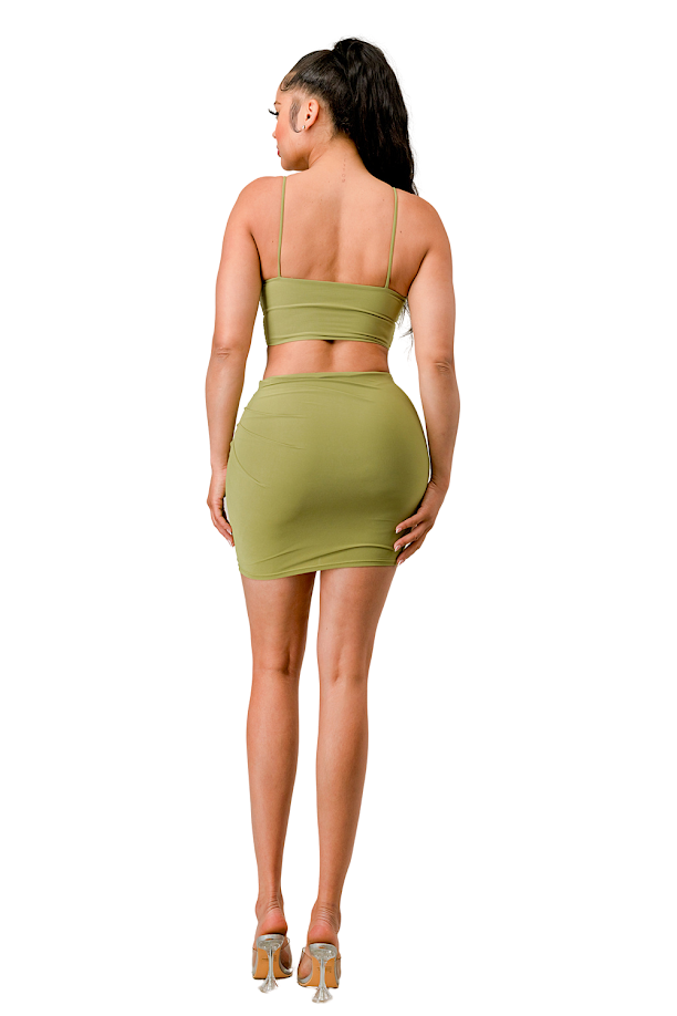 Spaghetti Strap Ruched Top With Lined Skirt Set